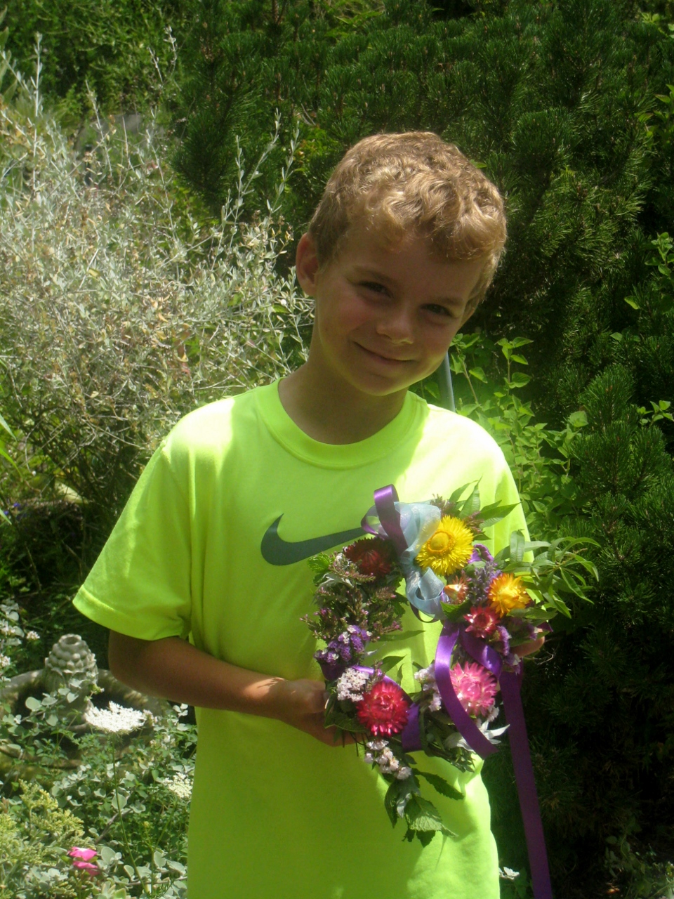 Alex with wreath he made for his mom.